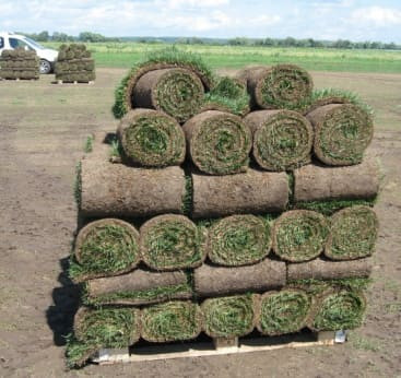 Перед срезкой траву прокашиваем, чтобы высота была одинаковой по всей площади, поливаем, чтобы корни находились во влажной почве. После этого специальная машина подрезает дерн и одновременно скатывает его в рулон, а затем укладывает на поддоны.